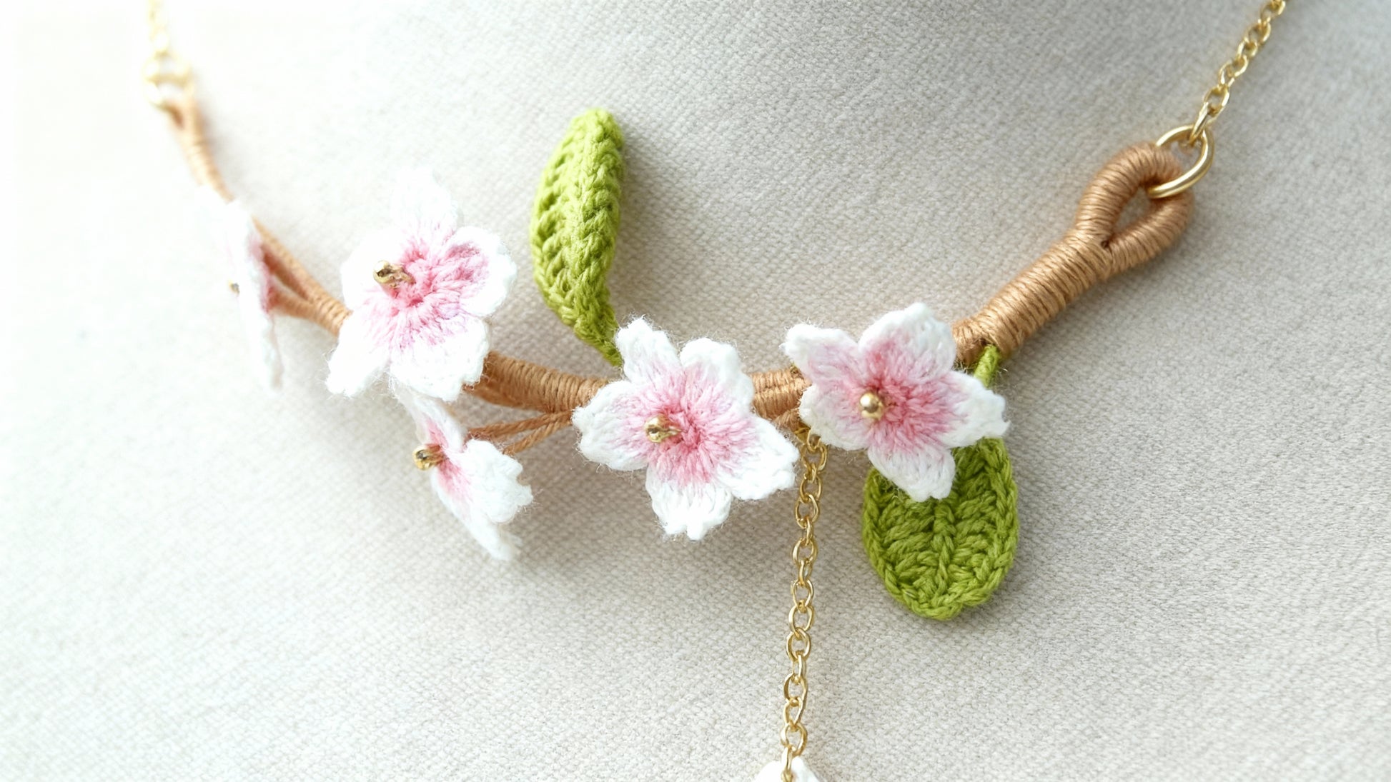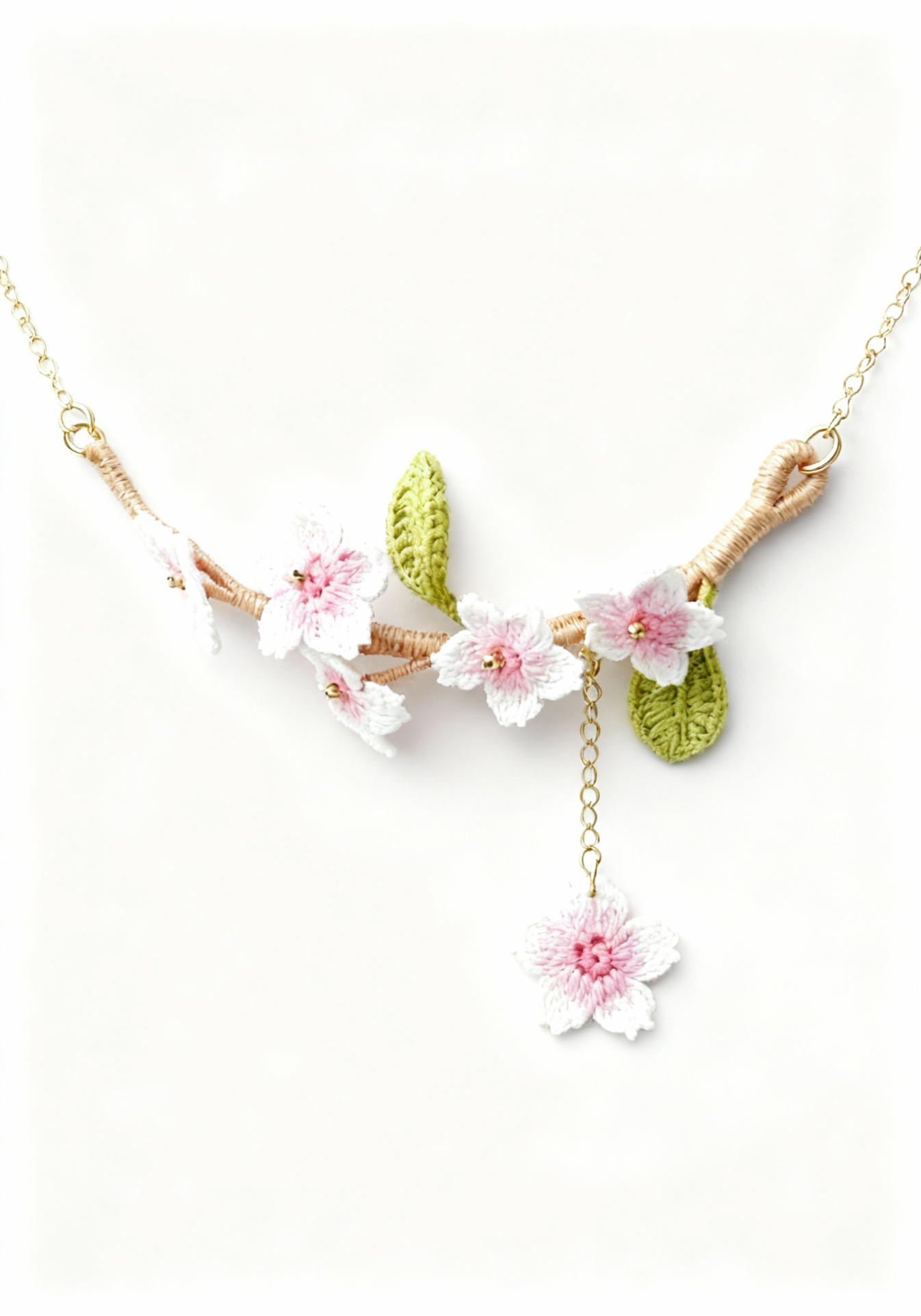 Handmade Micro-Crocheted Cherry Blossom Necklace: Artistry at Your Fingertips